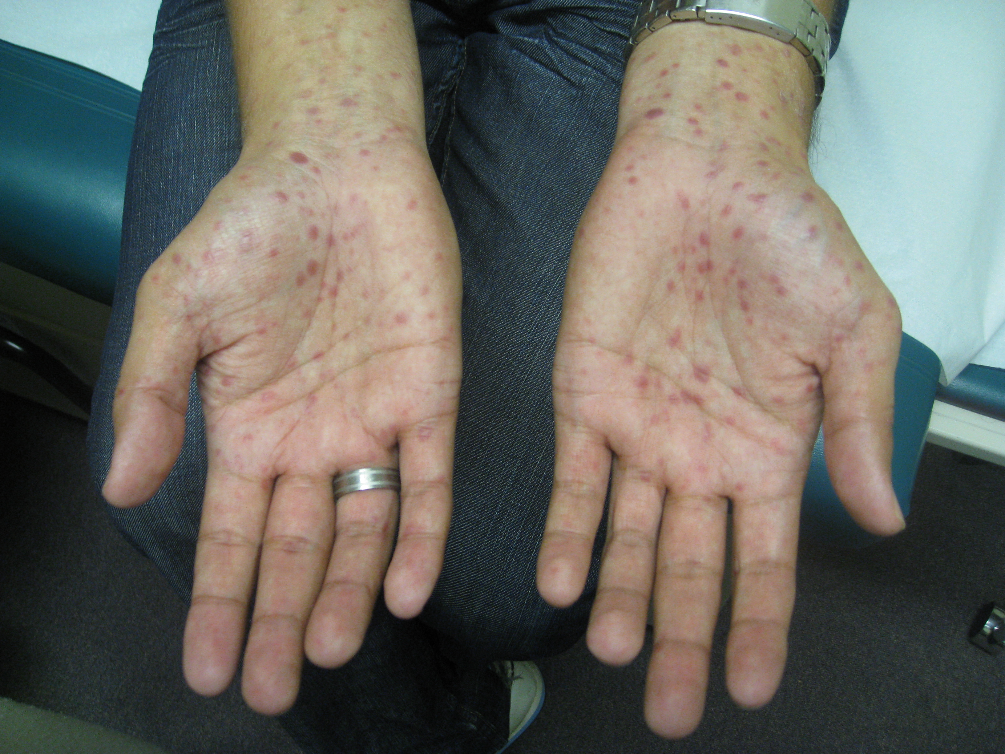 During Secondary Syphilis the person can also develop something called ‘Condylomata Lata’. This is when the Syphilis bacteria starts to live within skin folds in the genital, mouth and anal regions. There are no clear symptoms of this condition; however, it comes with a lot of transmission risk because the bacteria is in concentrated amounts.