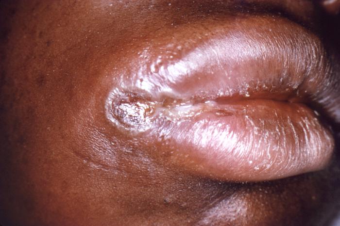 - A shiny, glossy or mucousy patch on the skin that may resemble an ulcer.